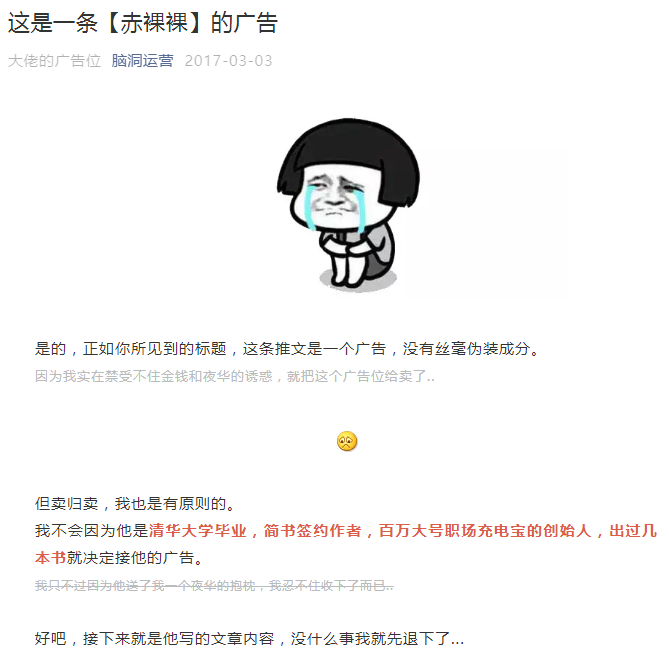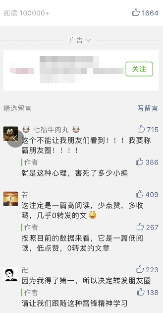 对于将公众号作为重要经济来源的公司来说,这显然很难舍。但对于一些不用承担主要营收压力的公众号来说,稳固粉丝、保持质量、维持口碑显然比变现更为重要。