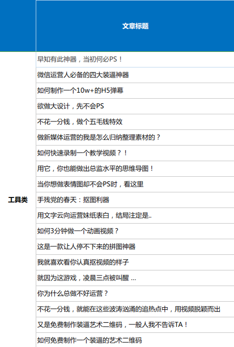 内容是否对用户有利,是脑洞选题中首先考虑的。因此公众号的工具推荐都是免费软件为主,运营人员都必须亲自去体验功能。