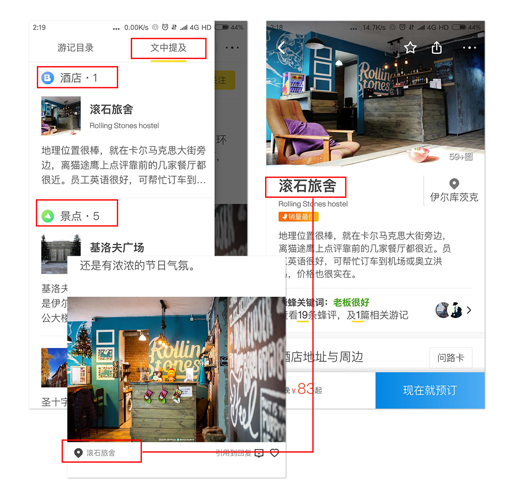 ② 相关信息链接:文章关联作者的出行信息和提及到的地点。用户在不转移场景的前提下就可以通过APP内页面跳转实现"用户、平台、供应商”三者间“查阅、交易”的流量闭环。回归马蜂窝品牌定位,即让自由行变得更加简单。