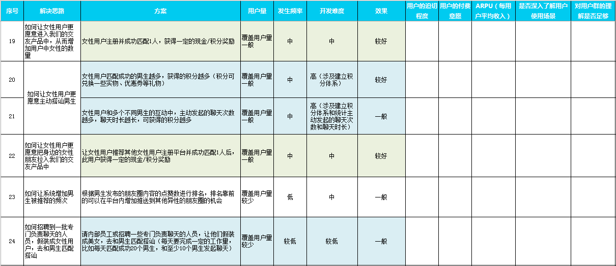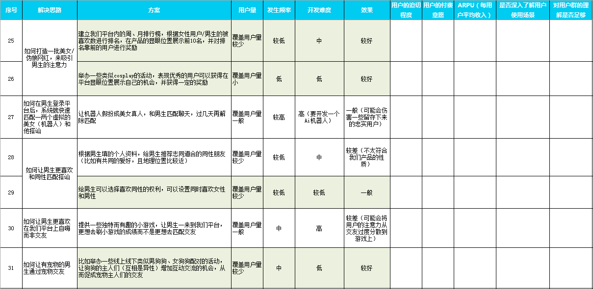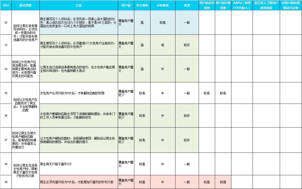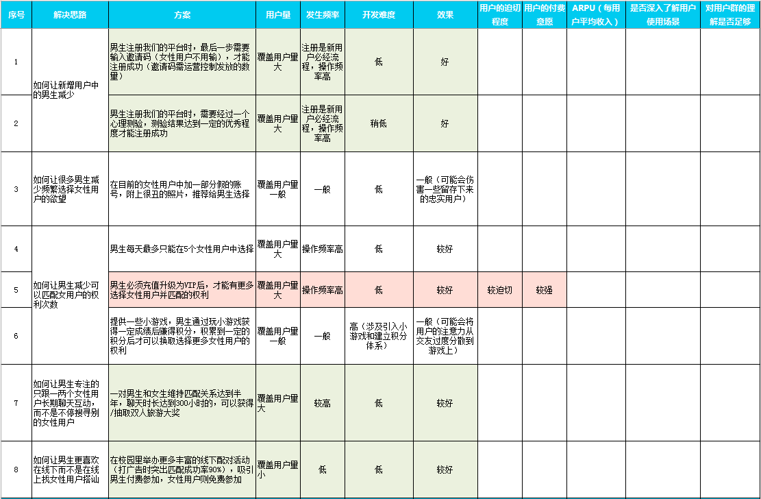 注:以下图中用底色标记了方案可执行性的强弱: 红色 > 绿色 > 蓝色 > 白色